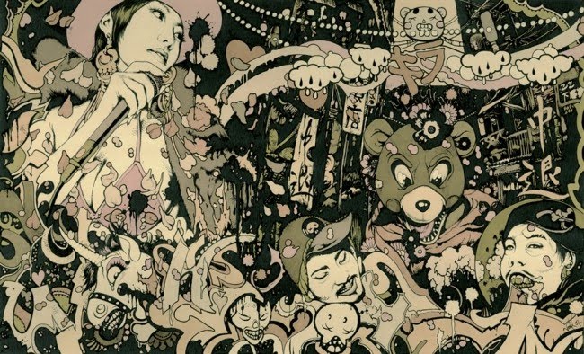 Plusieurs qualificatifs pour ses dessins, à la fois bibliques, malsains, inquiétants ,morbides et ou se mélange égéries pop ou exotiques, et fascination pour la mort ; Le tout sous un érotisme latent